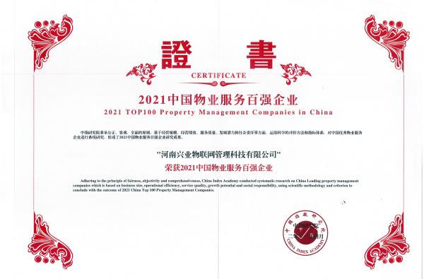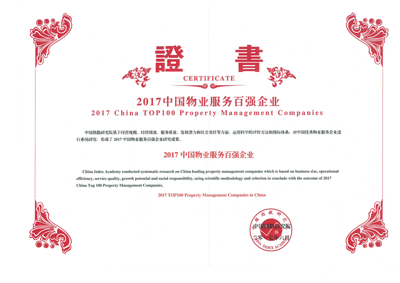 興業(yè)物聯(lián)榮獲 “2017中國物業(yè)服務(wù)百強(qiáng)企業(yè)”稱號
