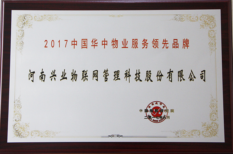 榮獲2017中國華中物業(yè)服務(wù)領(lǐng)先品牌