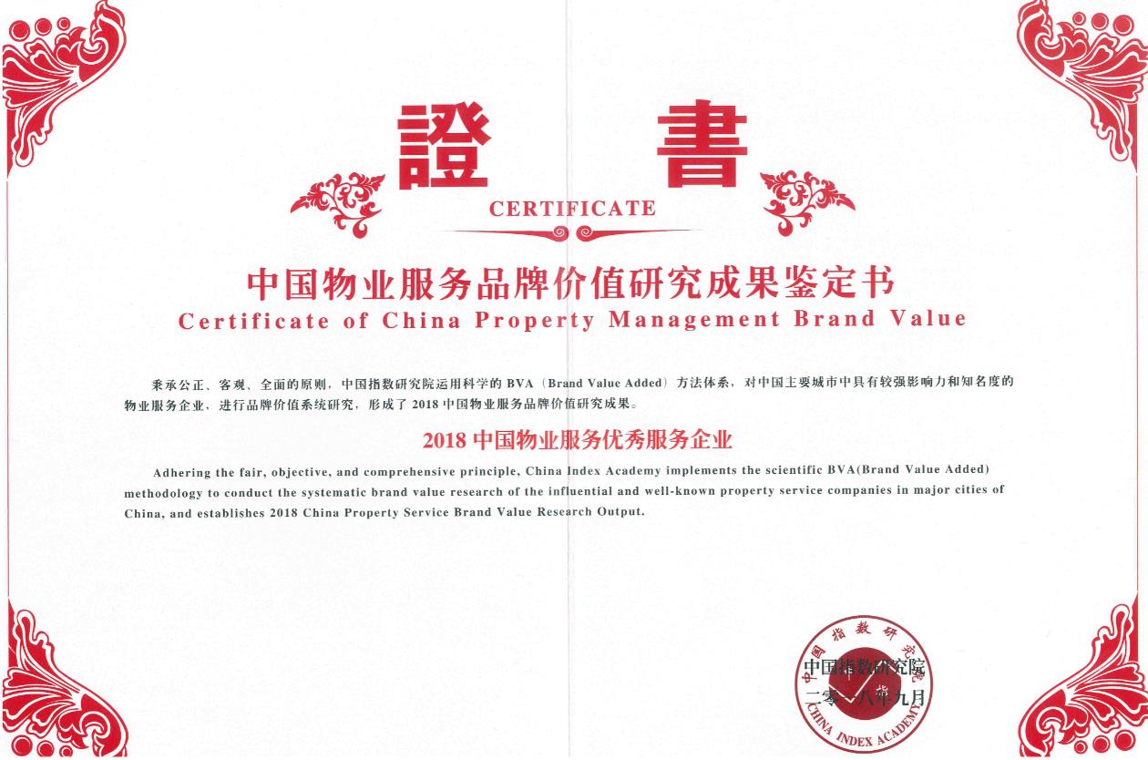 榮獲“2018中國物業(yè)服務(wù)優(yōu)秀服務(wù)企業(yè)”