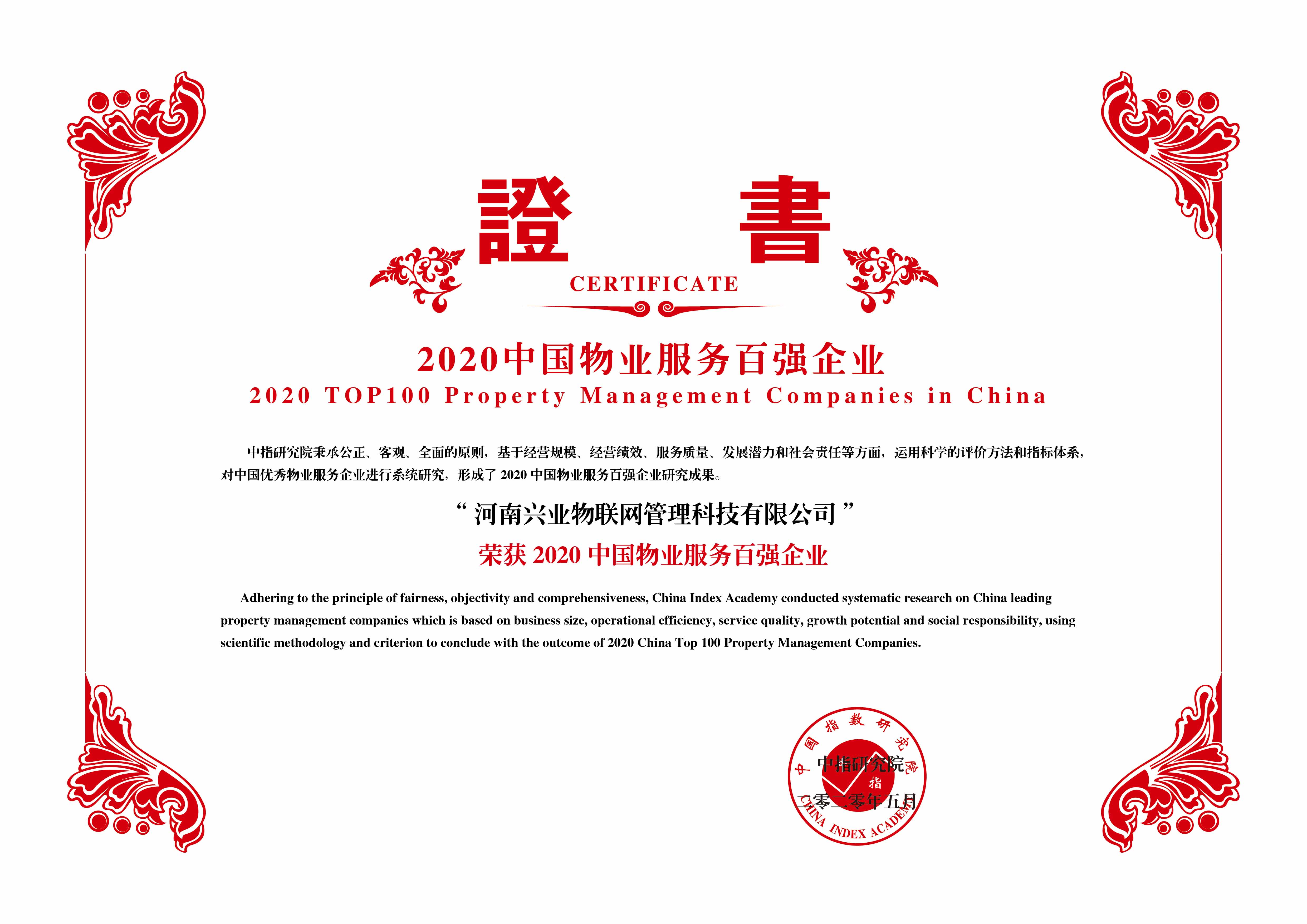 榮獲2020中國物業(yè)服務(wù)百強(qiáng)企業(yè)