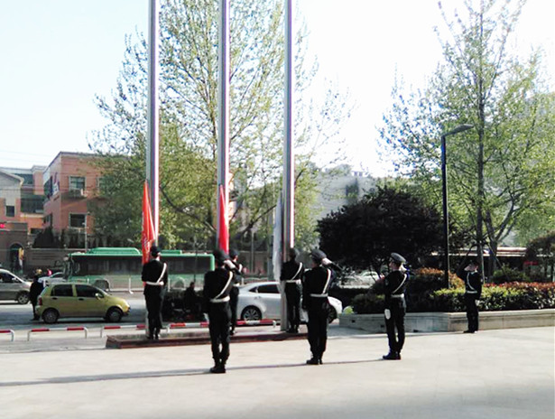 7點(diǎn)40整,神圣莊嚴(yán)的時(shí)刻來(lái)到了,在雄壯激昂的國(guó)歌聲中,英姿颯爽的國(guó)旗班戰(zhàn)士奮力揮臂將國(guó)旗拋向空中。高高的旗桿上,燦爛的朝霞中,鮮艷的五星紅旗在同志們的注目下冉冉升起。這一刻,每一名職工都心潮澎湃,臉上有一股服務(wù)者的自豪,思想得到進(jìn)一步升華……。