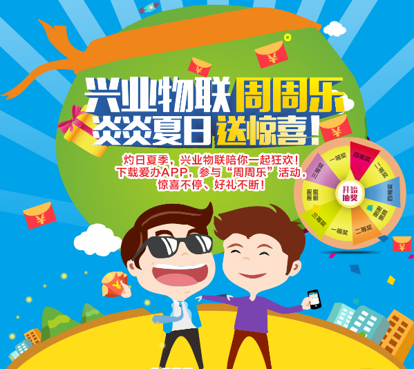 這個夏天除了空調(diào)、WiFi、西瓜,興業(yè)物聯(lián)還為您準備了“驚喜”,下載愛辦APP參與“周周樂”抽獎活動,周周有大獎,周周有驚喜,好禮送不停!