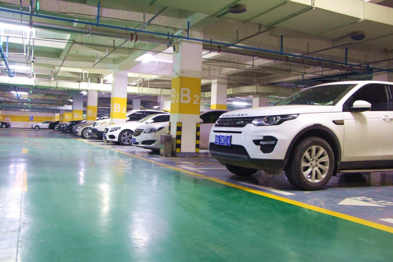 地下停車場區(qū)域標(biāo)識(shí)清晰,地面整潔