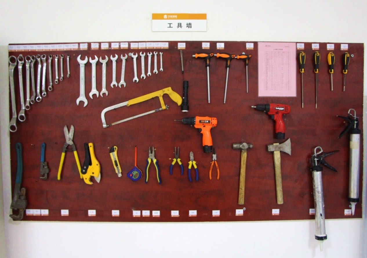 設(shè)施設(shè)備工具墻,工具擺放整齊、名稱規(guī)格清楚標(biāo)明