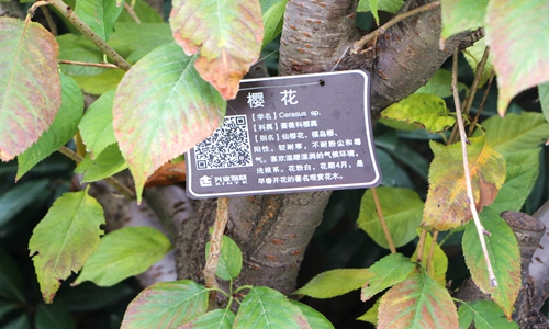 植物懸掛名牌,品名介紹清晰,掃描二維碼可了解更多信息