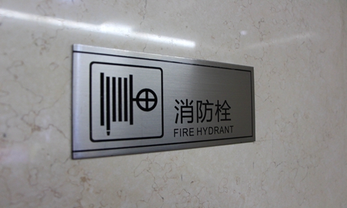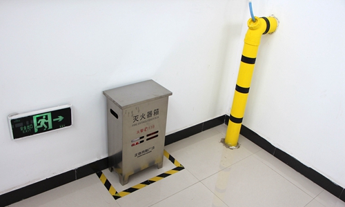 樓梯拐角放置滅火器,管道刷成黃色起警示作用