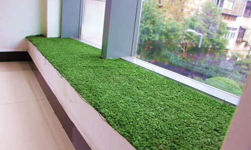 樓梯拐角側(cè)臺放置綠草皮,美觀衛(wèi)生