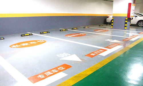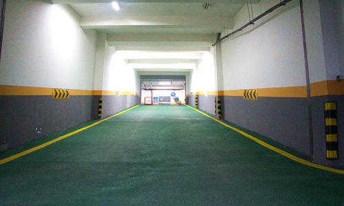 地下停車場出口處左右設(shè)置黃色警示引導(dǎo)線