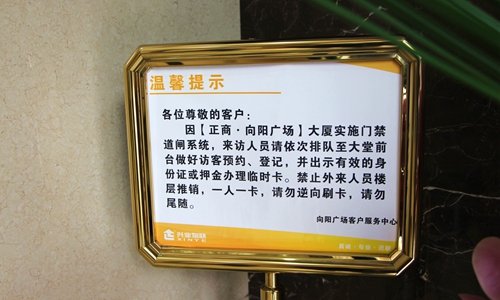大堂設(shè)置來訪出入的溫馨提示標牌