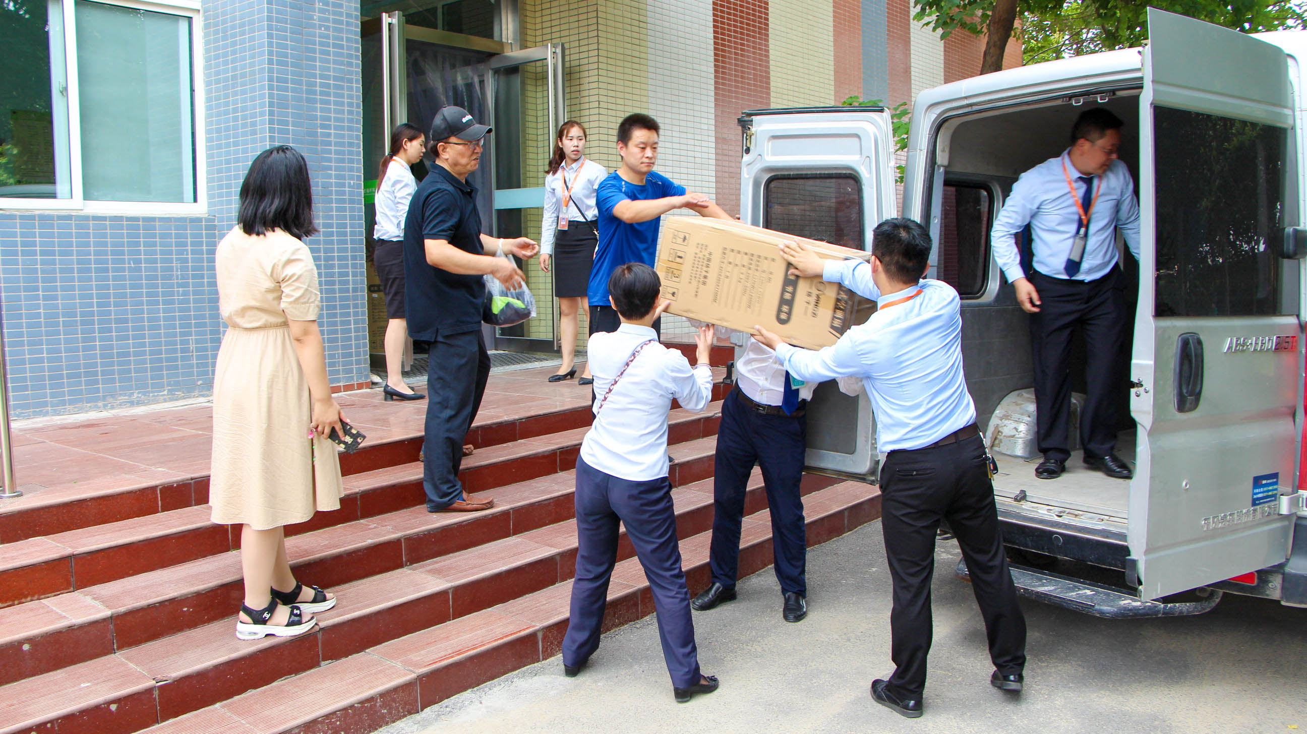 為福利院的孩子們送去了洗發(fā)水、空調(diào)扇、牛奶和面包等生活用品。
