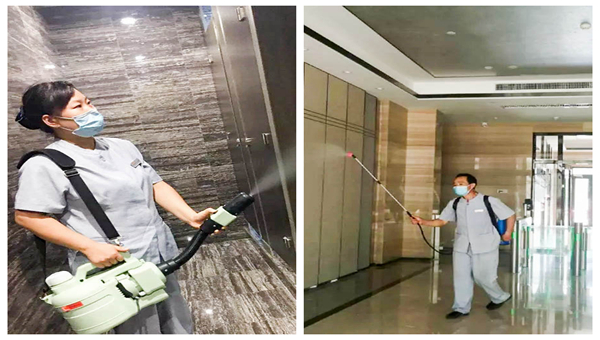 針對項目大堂、衛(wèi)生間等公共區(qū)域高頻次消毒