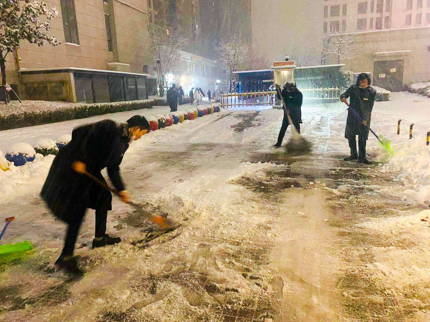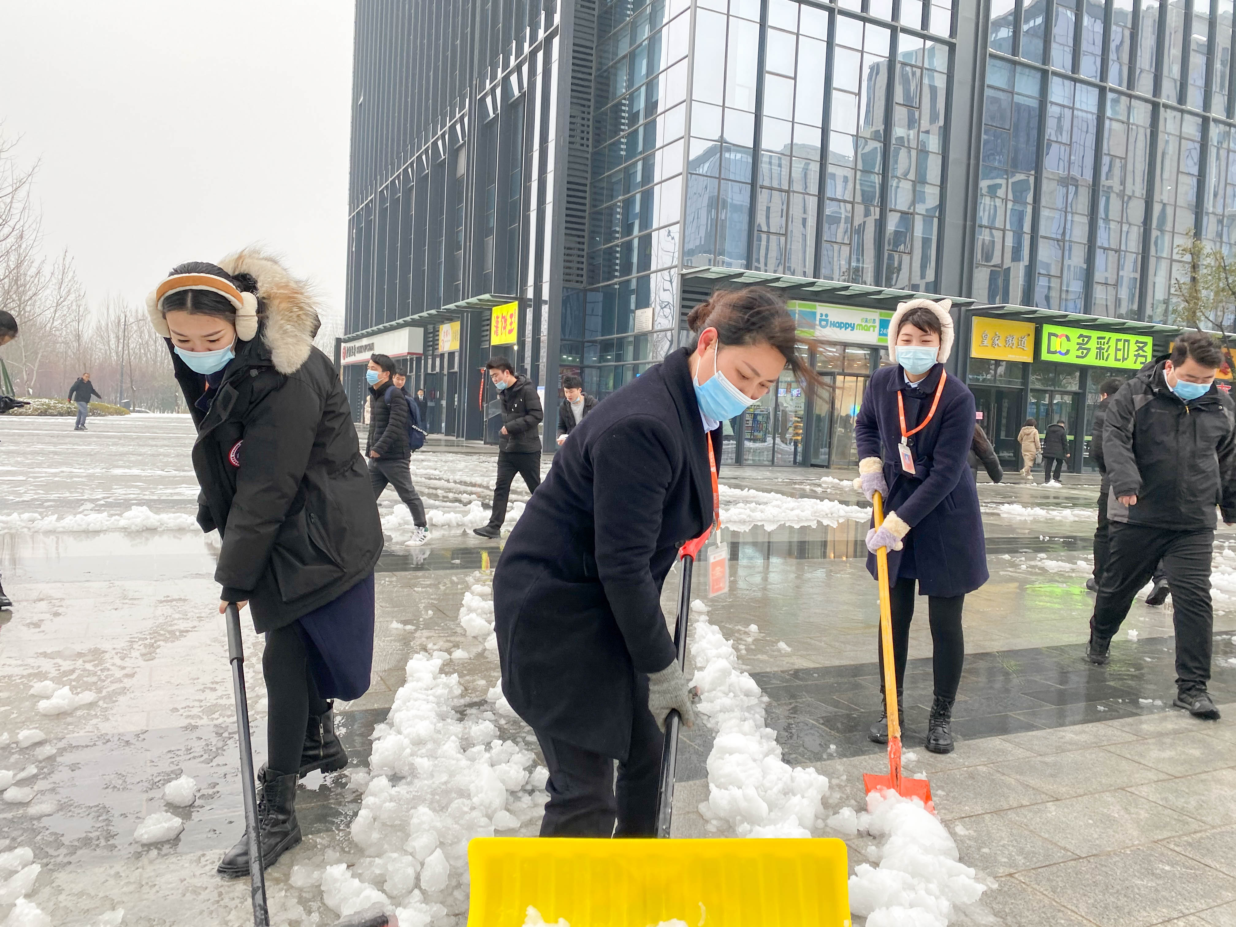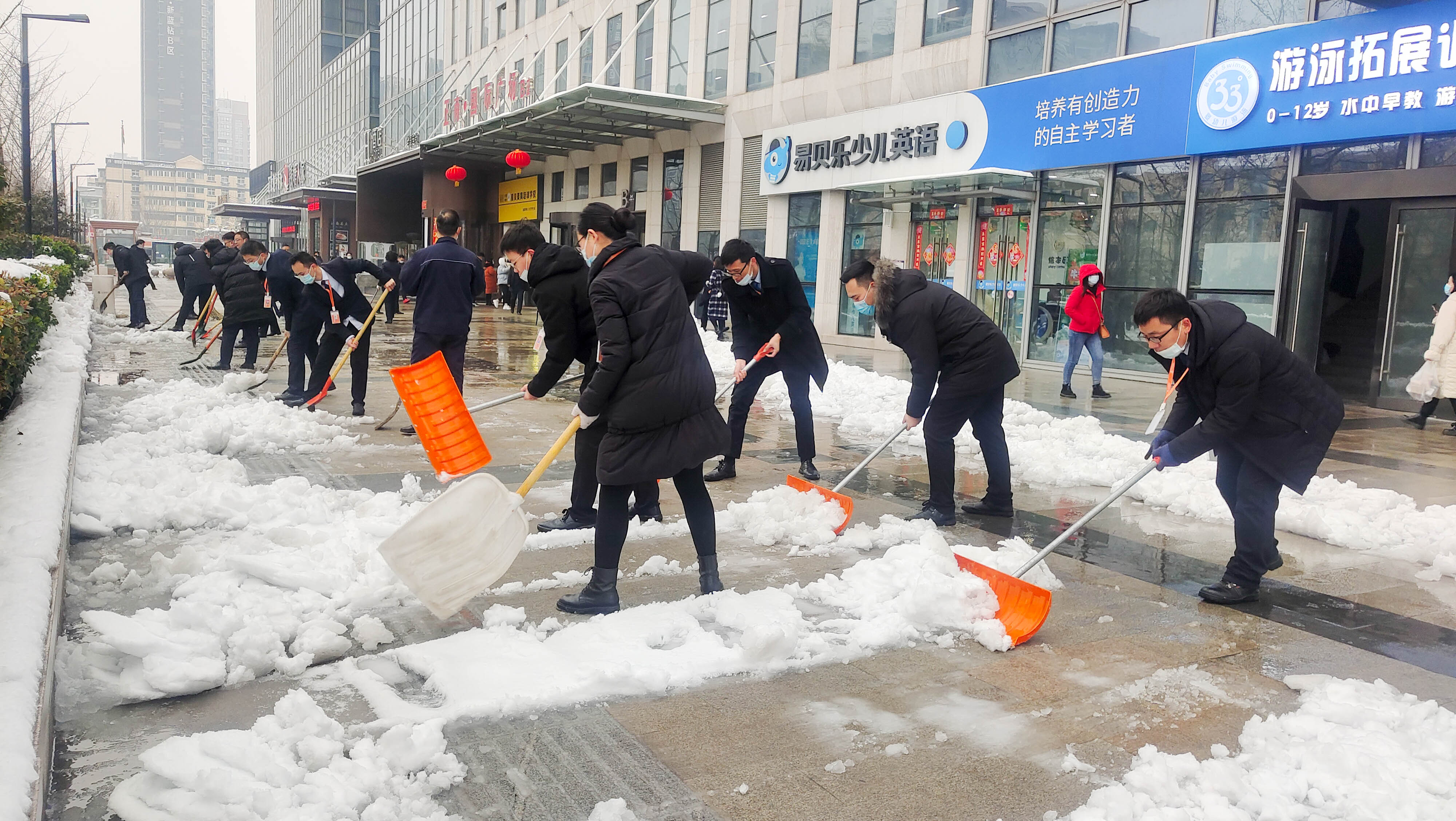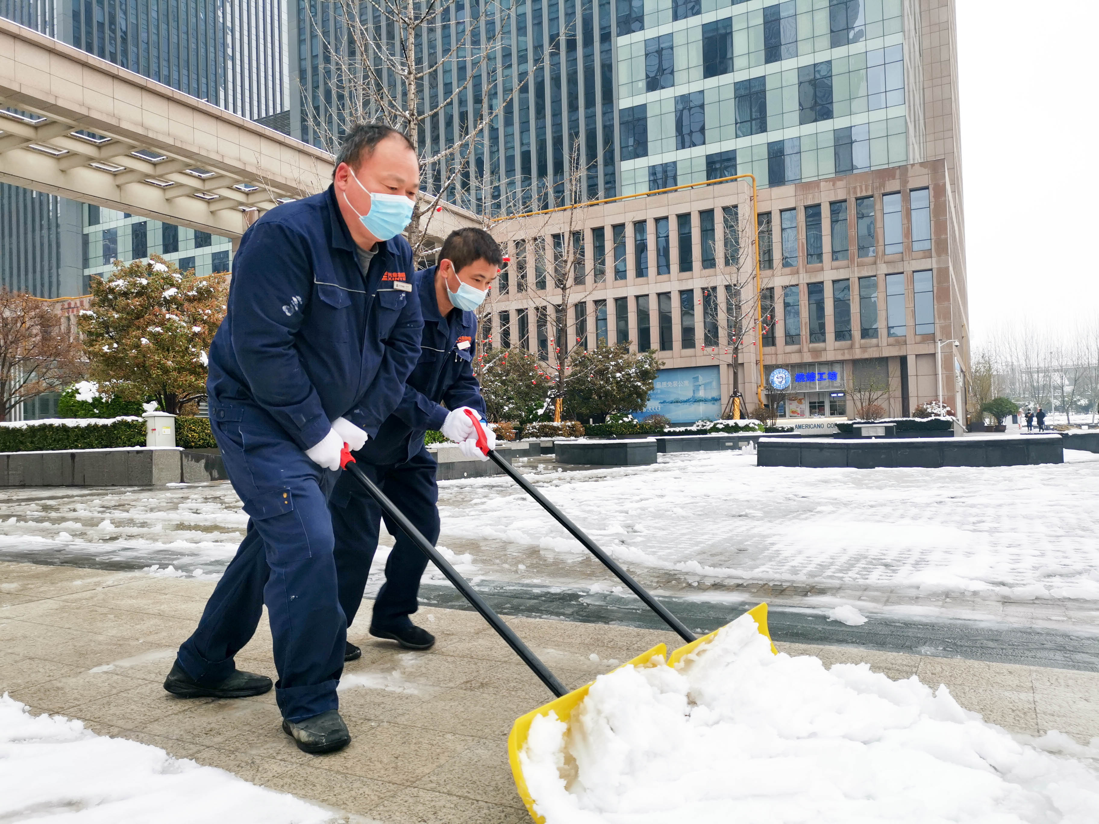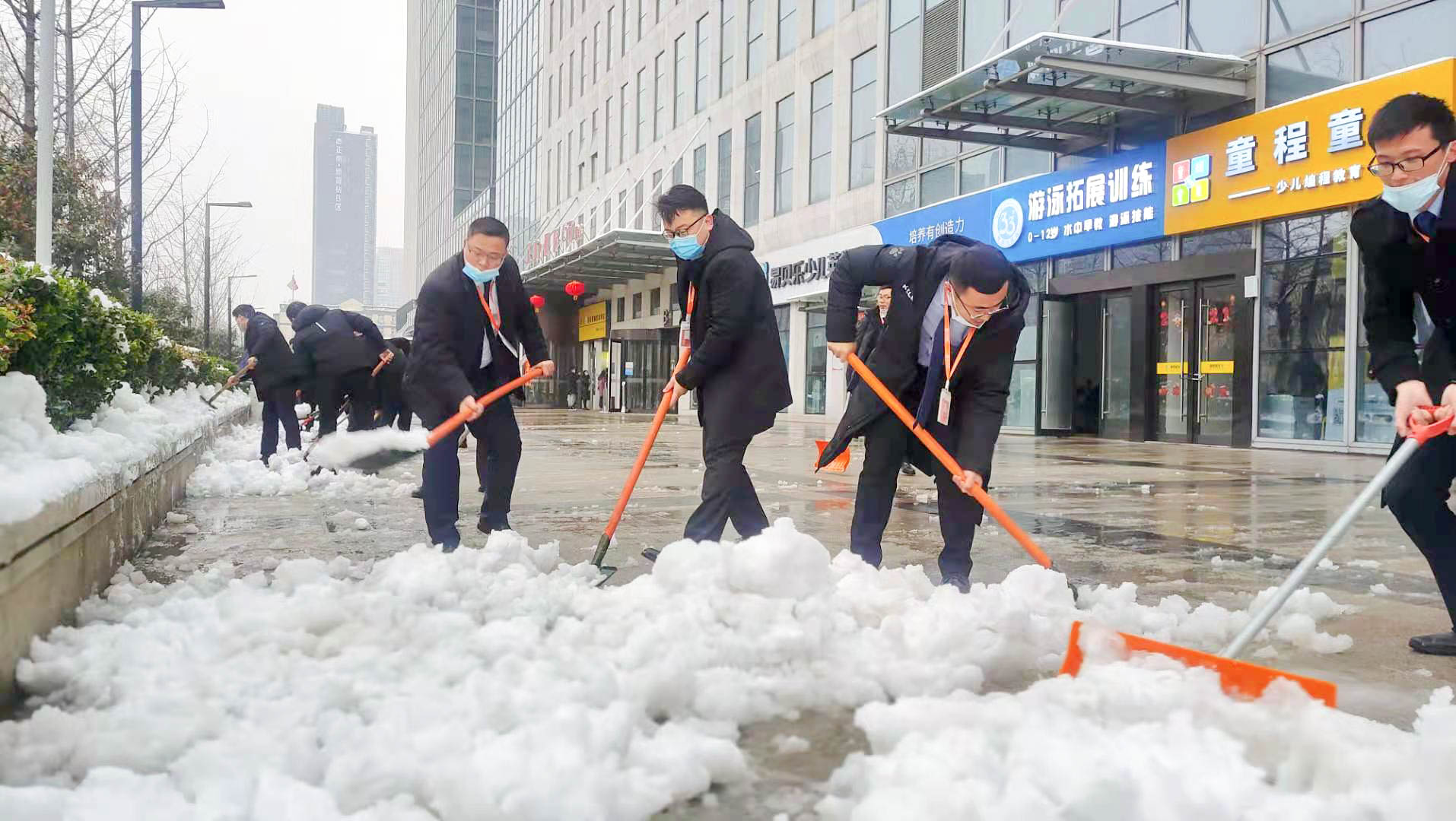 一場皚皚白雪,一群雪中的物業(yè)人。他們的背影成為寫字樓廣場一道靚麗的風(fēng)景線。