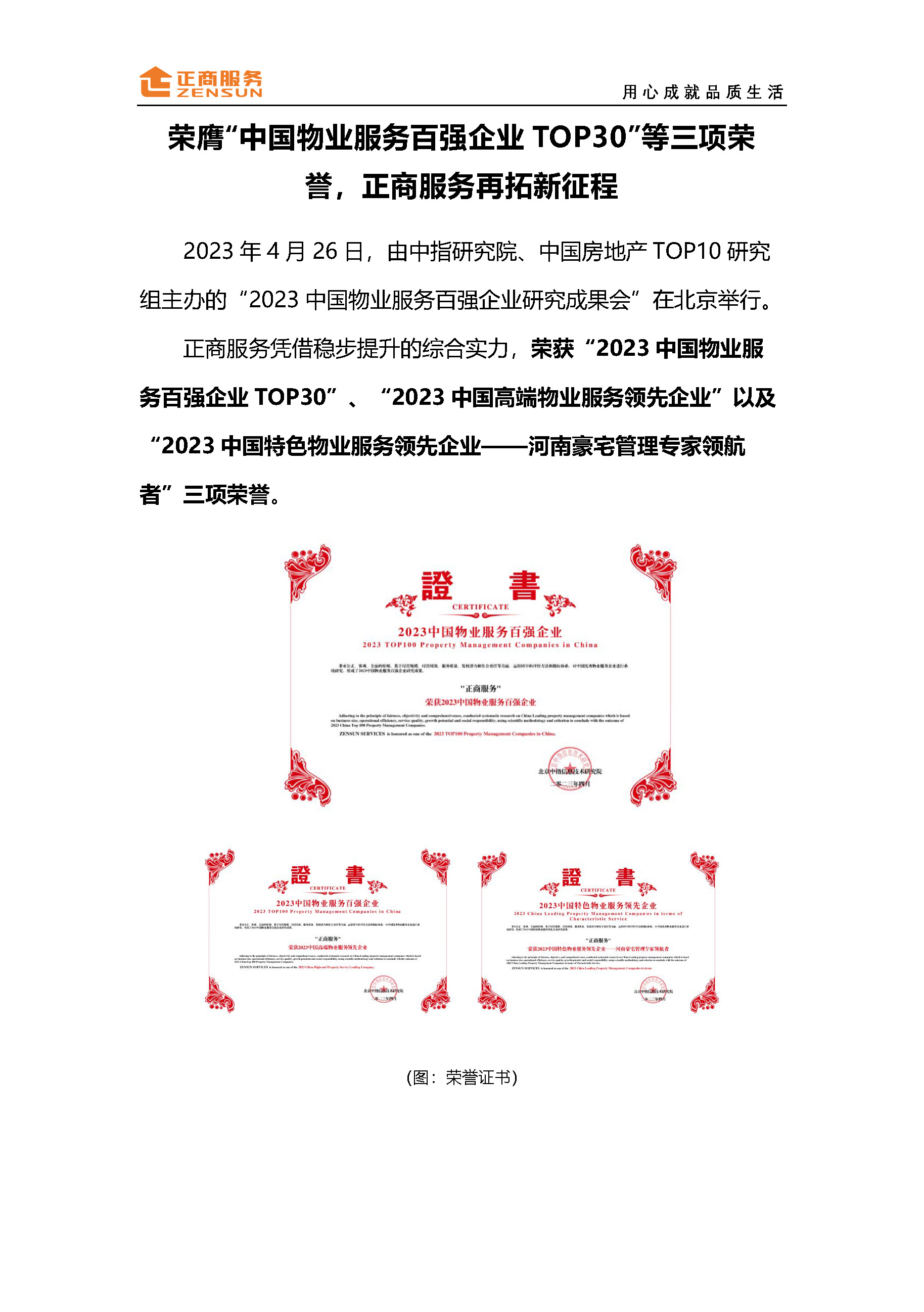 榮膺“中國(guó)物業(yè)服務(wù)百強(qiáng)企業(yè)TOP30”等三項(xiàng)榮譽(yù),正商服務(wù)再拓新征程