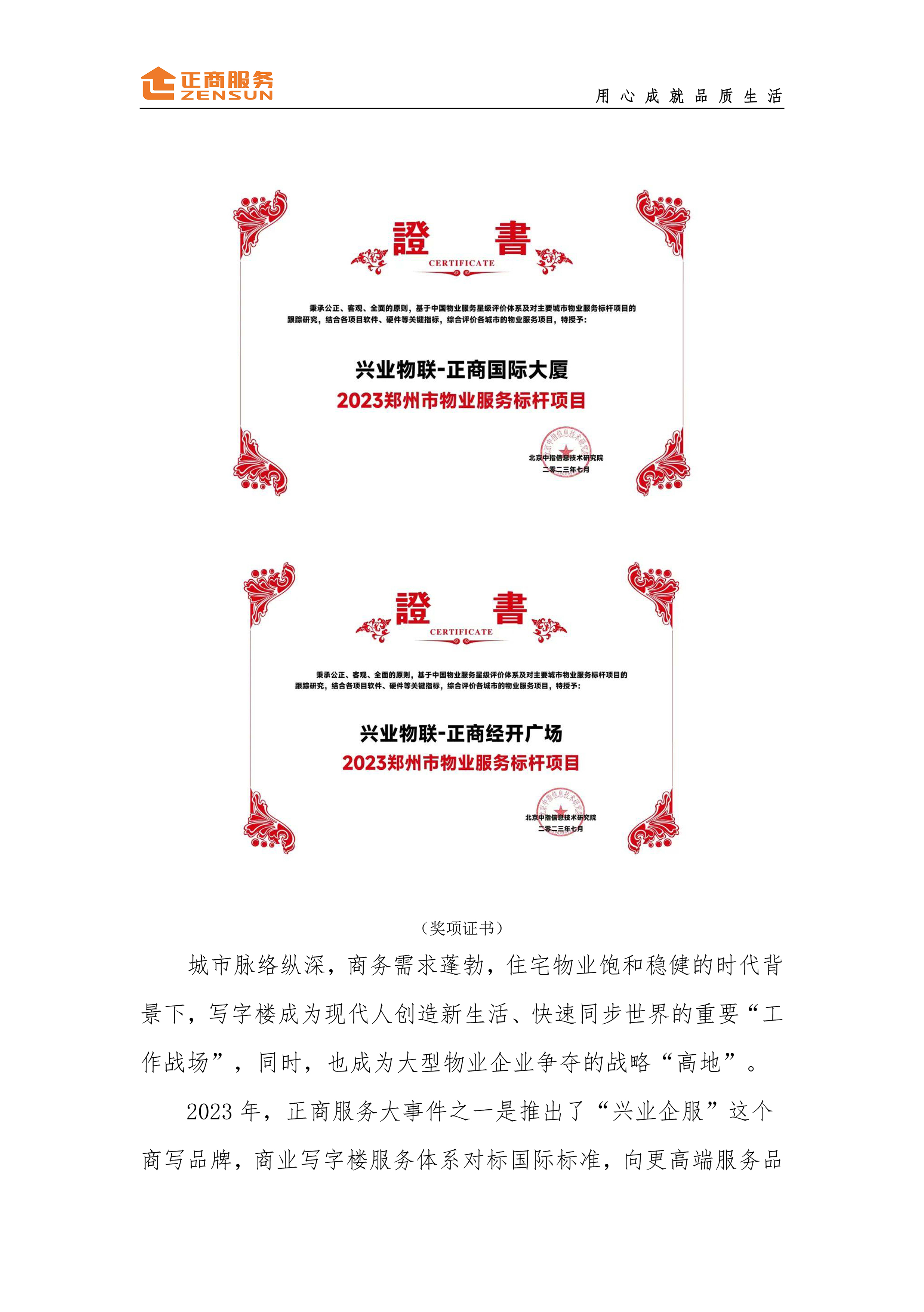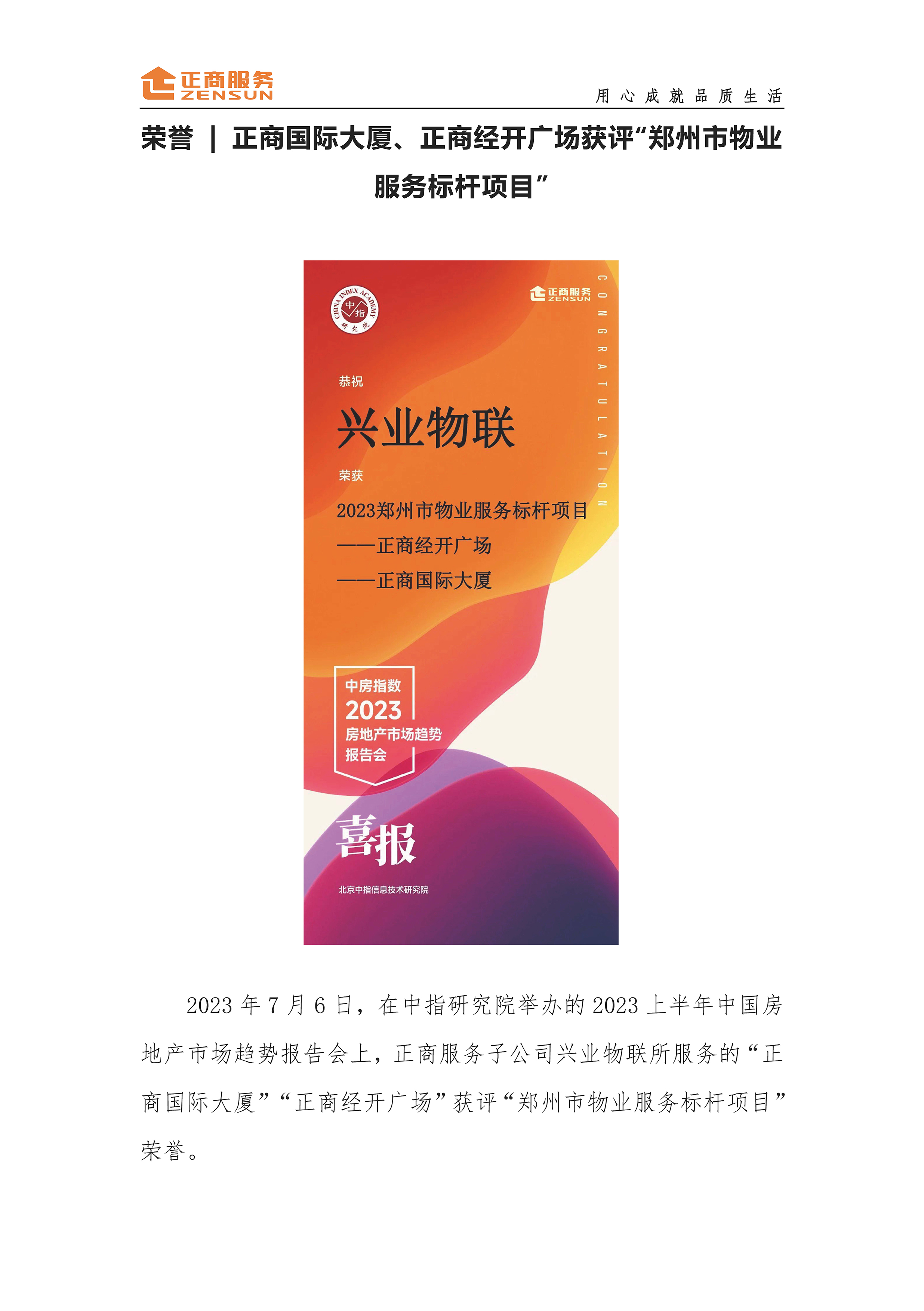 榮譽(yù) | 正商國際大廈、正商經(jīng)開廣場獲評(píng)“鄭州市物業(yè)服務(wù)標(biāo)桿項(xiàng)目”