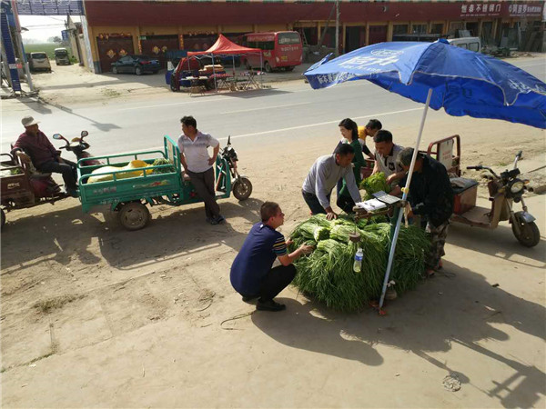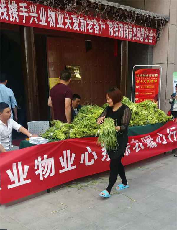 采訪中,一位排隊(duì)的客戶表示:“下鄉(xiāng)回購(gòu),寫字樓免費(fèi)派發(fā),必須給興業(yè)物業(yè)和天中驛站點(diǎn)個(gè)贊,這一車車的蒜薹,想必幫助了不少眾多菜農(nóng)!”