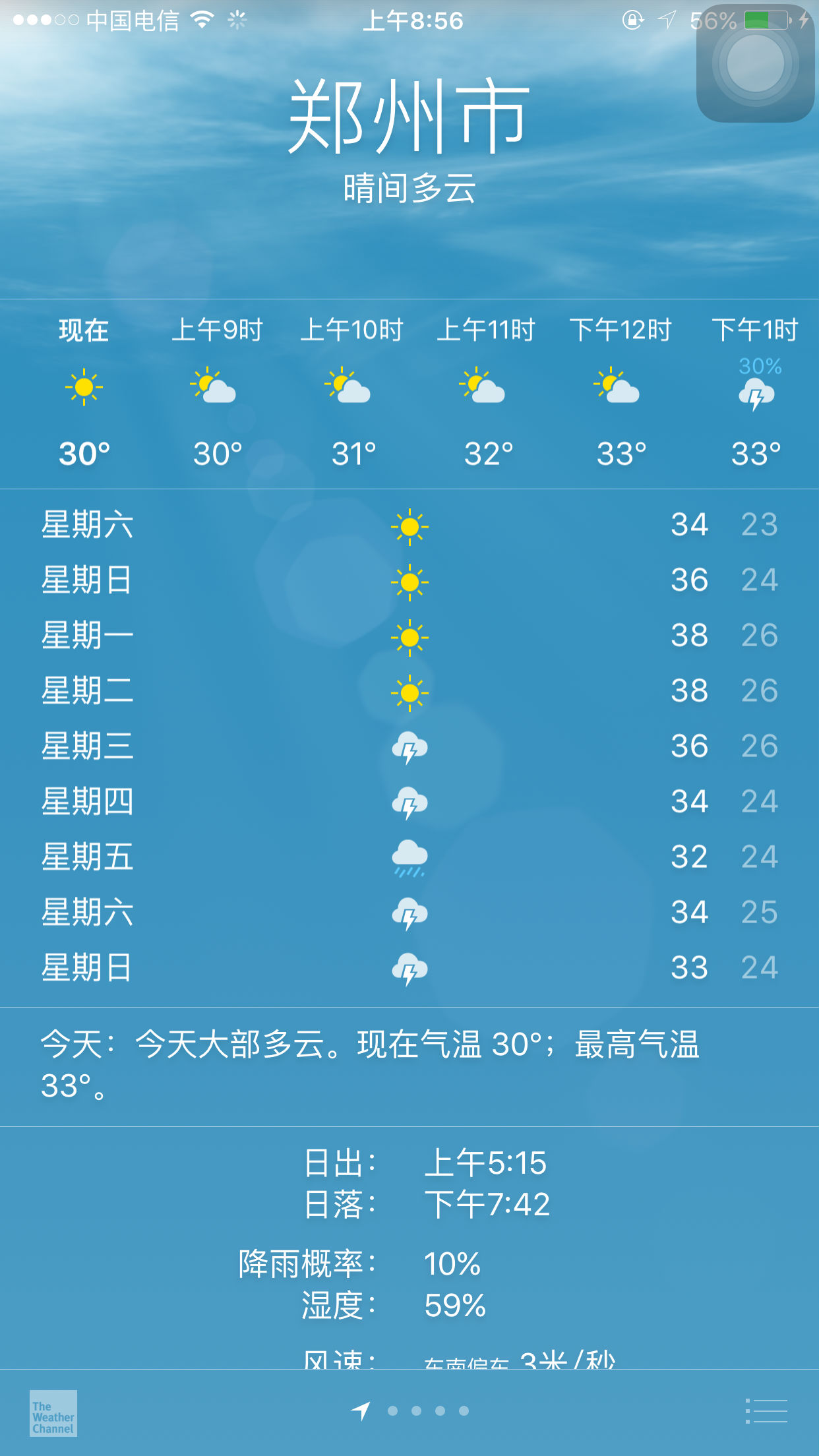 38℃的天氣是什么樣的體驗(yàn)?就是什么都不做,也會(huì)全身冒汗!先來(lái)看看鄭州近一周左右的天氣情況吧!