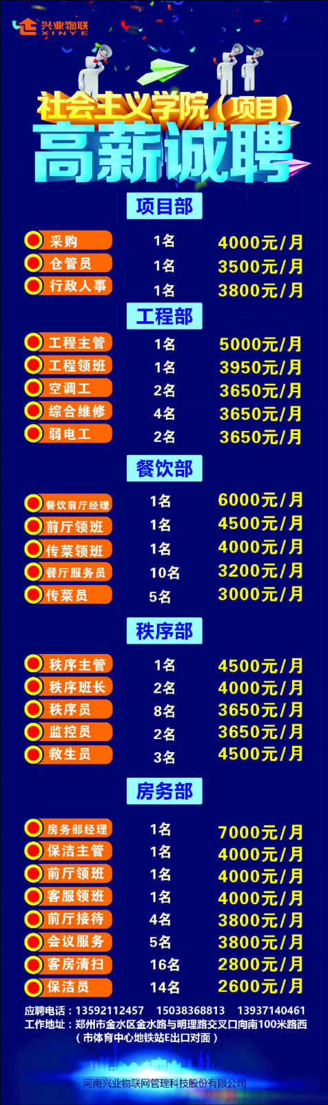 這里是興業(yè)物聯(lián)大型招聘現(xiàn)場,既然有緣進來了,我相信您一定是有責(zé)任心,有擔(dān)當(dāng),有勇氣的人!