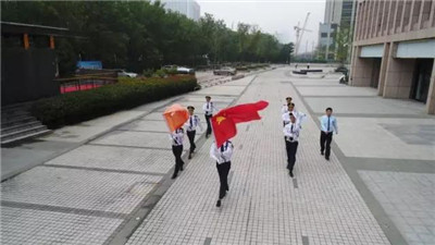 (無(wú)人機(jī)拍攝實(shí)景圖:升旗儀式現(xiàn)場(chǎng))