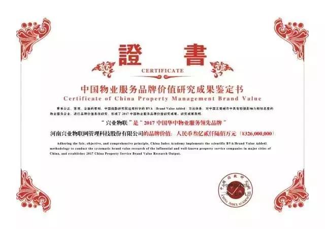 圖:興業(yè)物聯(lián)榮譽(yù)證書