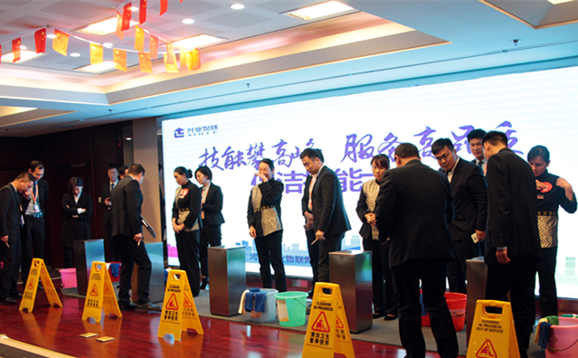 2017年11月,由興業(yè)物聯(lián)主辦的2017年“技能攀高峰,服務(wù)高品質(zhì)”首屆保潔技能競賽在建正東方中心會議室拉開帷幕。興業(yè)物聯(lián)百余名選手參加了此次大賽初賽,決賽圍繞基礎(chǔ)知識比拼、實操比拼、班后會展開激烈競逐。