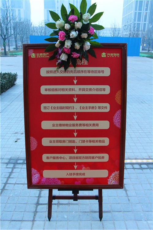 現(xiàn)場(chǎng)布置的交房流程導(dǎo)示圖,將交房工作的整個(gè)流程詳盡展示,業(yè)主們一目了然。從排號(hào)、物業(yè)服務(wù)、鑰匙領(lǐng)取等,整個(gè)現(xiàn)場(chǎng)快速高效、有條不紊。交房區(qū)