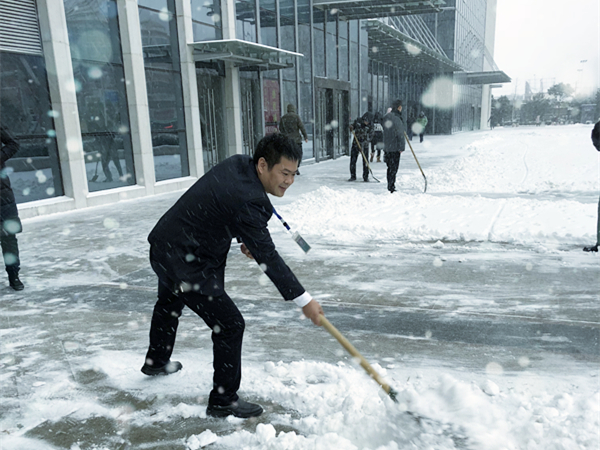 天蒙蒙亮,廣大員工冒著颼颼襲來的寒風(fēng),揮舞著鐵鍬和笤帚,相互配合,你鏟我掃……在董事長朱杰的帶領(lǐng)下,一點點地將積雪和冰層鏟起集中堆放,盡管大家的臉都凍得通紅,但手中的掃雪工具卻不停地?fù)]舞著,忙得渾身是汗,在歡聲笑語中掃出了干凈和暢通的大道。