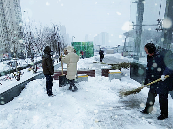 建正和諧大區(qū)掃雪進(jìn)行中……