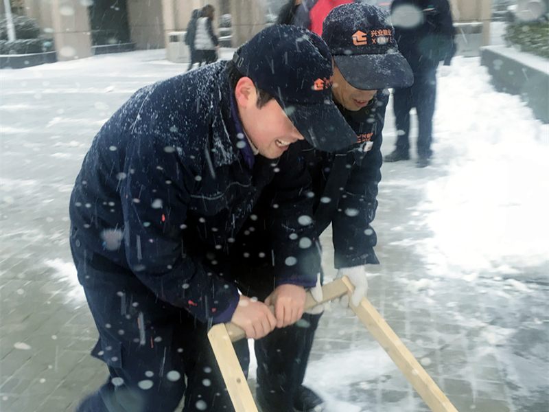 在雪天,忙碌掃雪的興業(yè)物聯(lián)人也不失為城市紛飛大雪中的一道亮麗風(fēng)景。對于興業(yè)物聯(lián)人來說和欣賞雪景比起來,保證業(yè)主安全出行才是頭等大事。