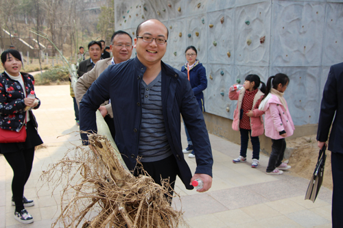 首先開始找合適的地方挖坑,然后運樹苗,有大人也有小孩,一組組都是那么的開心!當(dāng)他們植完樹后又親自給自己植的樹澆水,希望自己植的樹能夠長得越來越旺盛!最后每個人在自己植的樹上系下了自己的美好愿望,并且與自己植的樹合影留念!